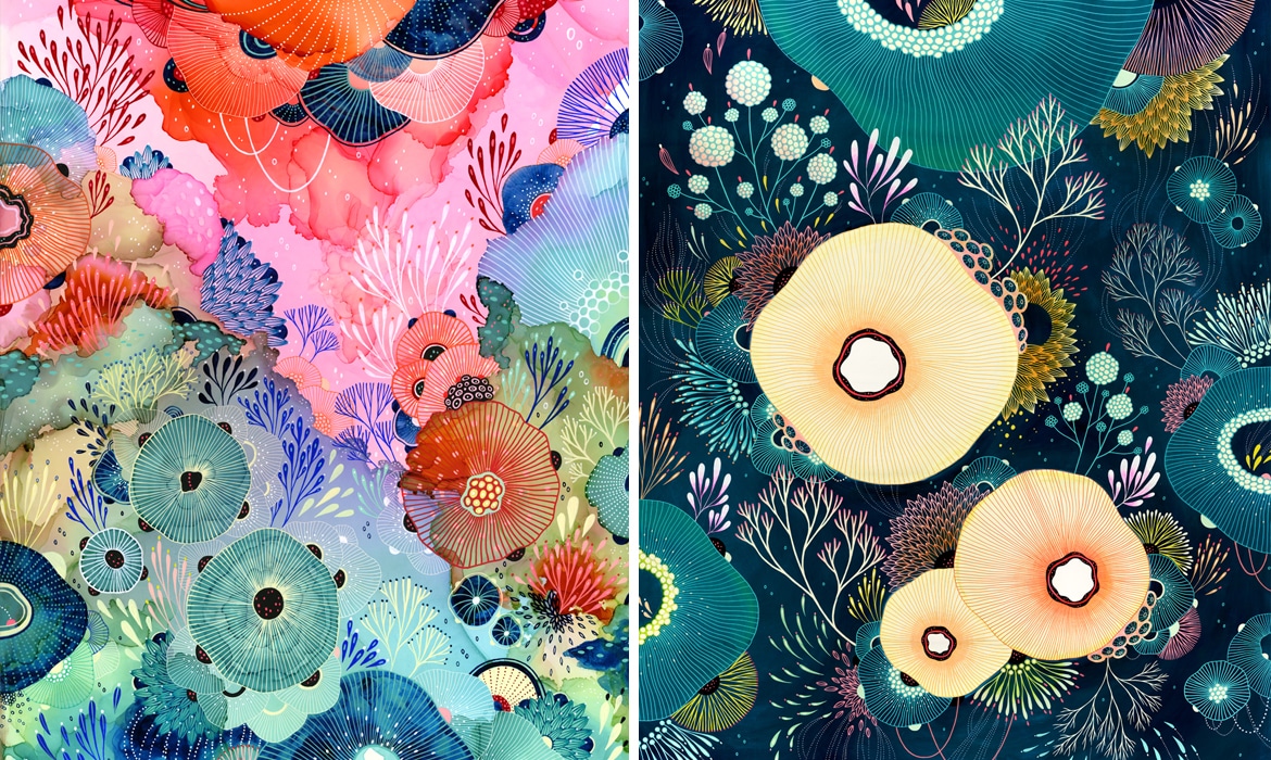 Artist Paints Imaginary Ecosystems Bursting With Colorful Flora and Fauna
