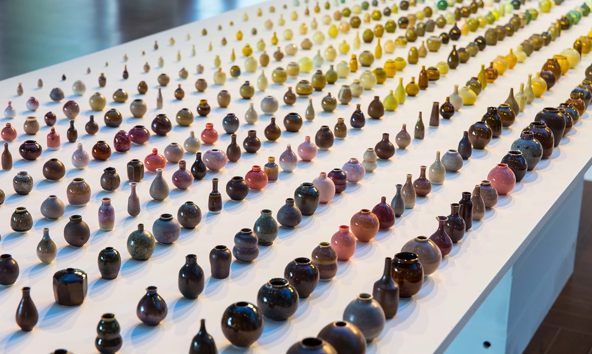 Hand-throwing perfectly formed vessels on a pottery wheel is an impressive skill in itself, but Japanese ceramicist Yuta Segawa takes the art form a step further by crafting vases in miniature scale. His growing collection of over 1,000 tiny vessels features an array of tiny, colorful vases—all of which have been made with the same attention to detail as a full-sized piece would.