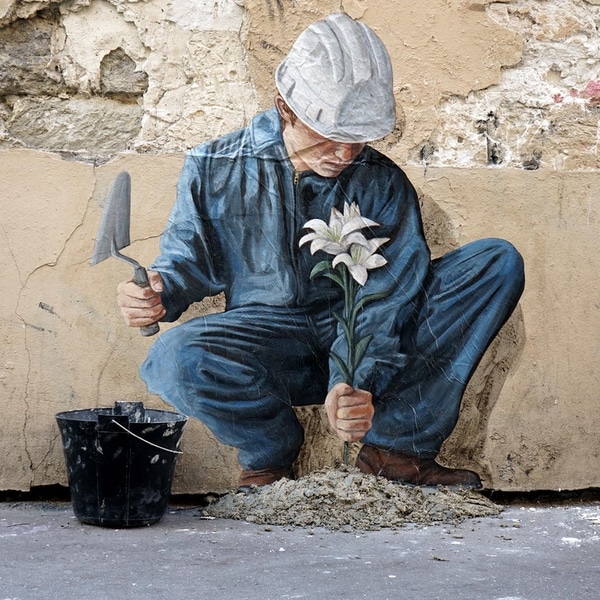 María López and Javier de Riba are the creative force behind the Spain-based art collective Reskate Studio. Originally formed to upcycle discarded skateboards, they have since applied their unique vision to a range of disciplines. One of their most recent endeavors is called the Harreman Project, from the Basque word for relationship. Inspired by reminiscence and etymology, it features striking murals that light up after dark.