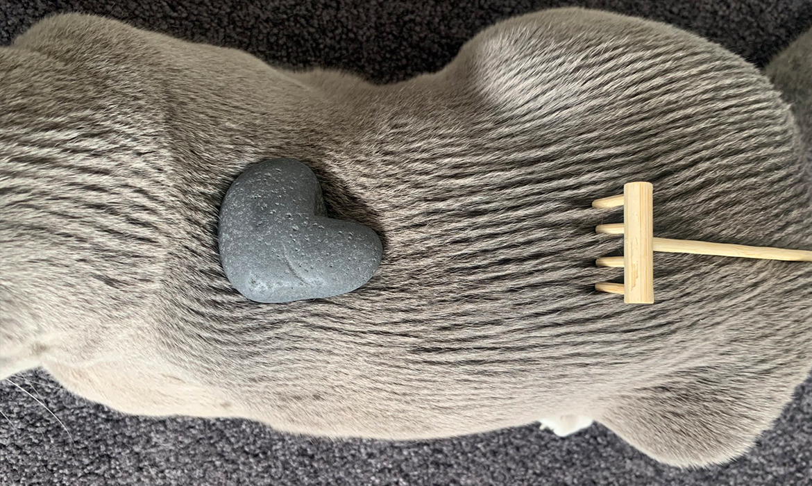 Cats are pretty chill, but there’s one feline in Sydney, Australia who’s so relaxed, that she’s become a zen garden. Professor, writer, and poet Sarah Holland-Batt used a tiny rake and some stones to transform her cat, Lola, into what looks like a Japanese landscape. Lola’s sand-colored fur makes the perfect surface for creating swirling rake patterns, and the chilled out cat seemed more than happy to sit still while being mindfully combed.