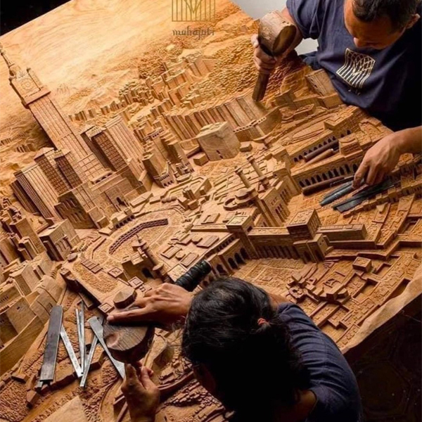 Majestic Wooden Tables Handcrafted With Tiny Mountainscapes on Top