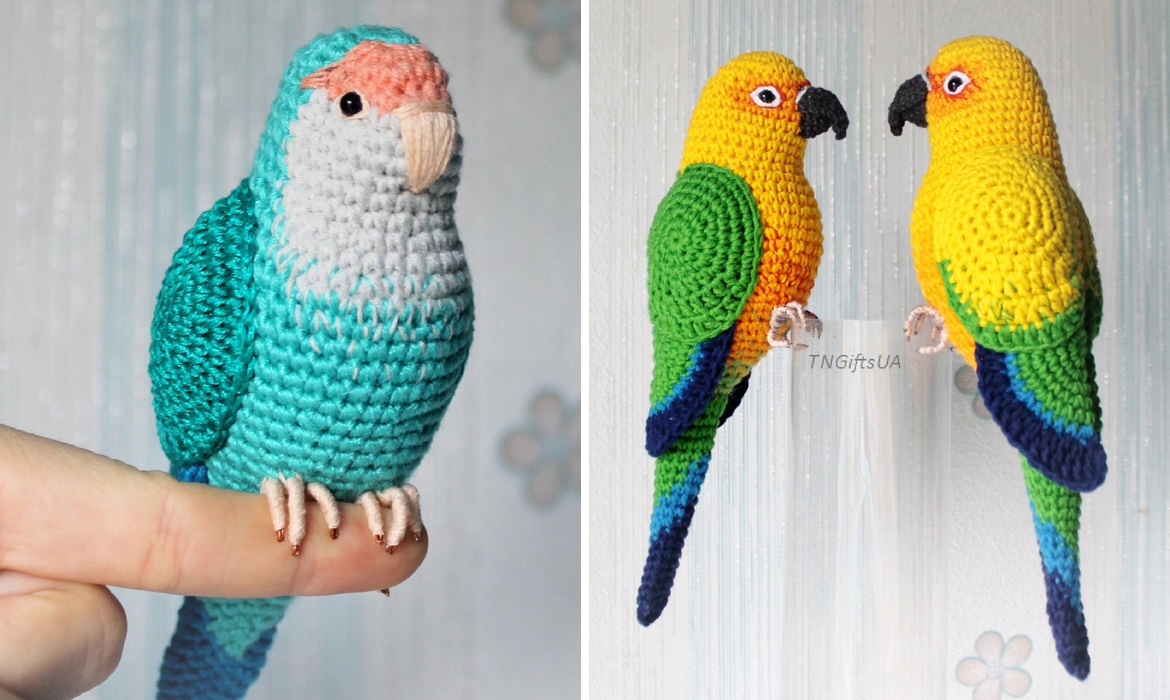 Crochet is about more than creating blankets and clothing. Did you know that there is a technique called amigurumi that invites you to make adorable figures from yarn and a hook? Crafter Tanya Zhylyayeva uses this approach to construct her own flock of parrots, lovebirds, cockatiels, and more. In her popular Etsy shop, you can purchase one of her ready-made birds as well as downloadable patterns to try on your own.