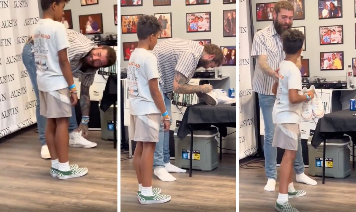 Post Malone Gifts a Young Fan the Shoes He’s Wearing at a Meet-And-Greet