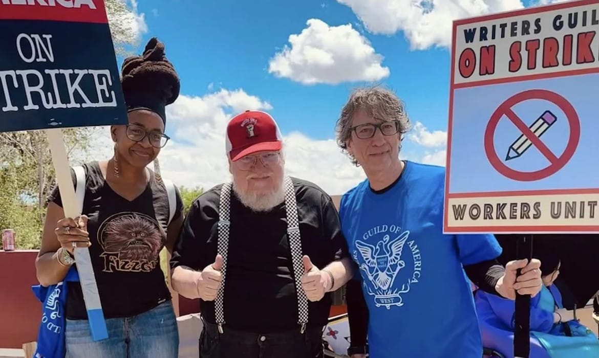 George R. R. Martin Joins the Picket Line of the WGA Strike in His Home of Santa Fe, New Mexico