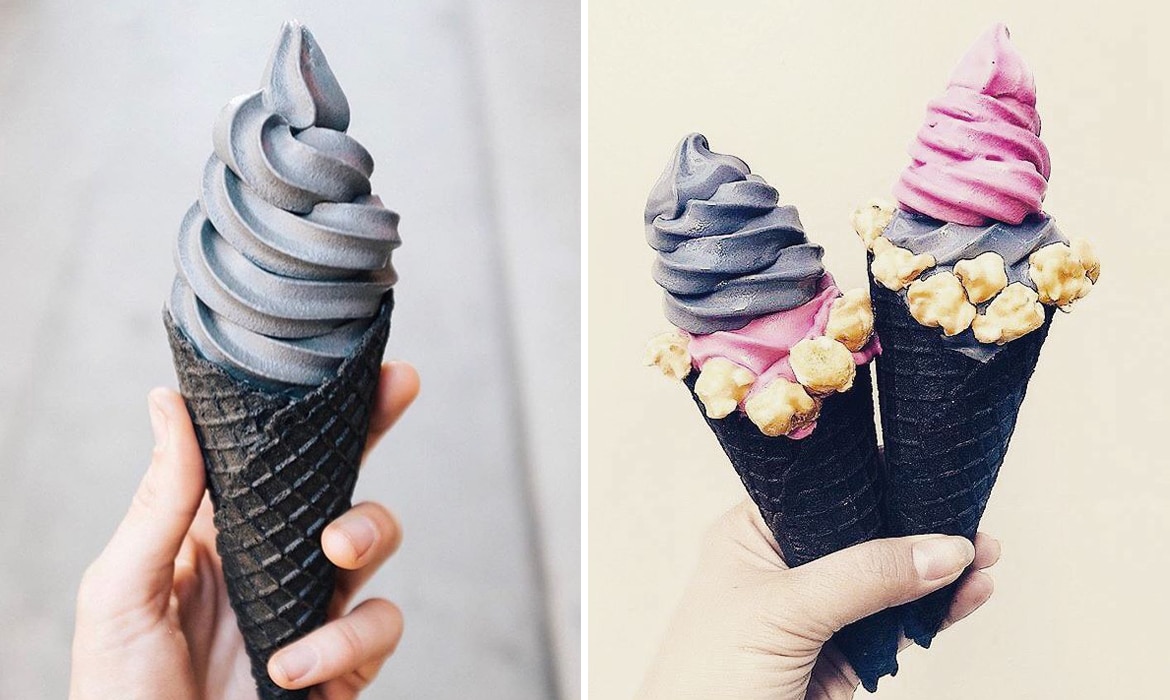 Creative food trends have seemed to dominate 2017 so far, but hey, we’re not complaining. Not only do these unconventional edibles look delicious, but they make eating a memorable experience. One of the latest in unique foods is being called a goth waffle cone—a black ice cream cone that holds colorful flavors of soft serve ice cream. Available at the Los Angeles-based shop Little Damage, they’ve managed to make a childhood treat look positively spooky.