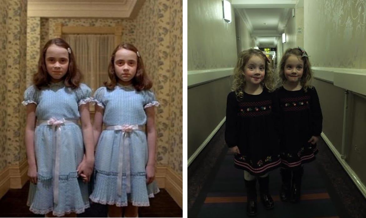 Raising twins is undoubtedly twice the work, but, as one father has learned, it's also double the fun. Martin Hughes, a dad from England, has an identical set of 4-year-old twin girls named Poppy and Isabella. During a recent trip to London, he decided to play a prank on his fellow hotel guests inspired by the Grady twins, an iconic, identical duo from Stanley Kubrick's The Shining.