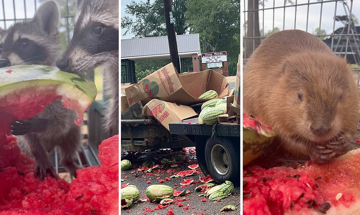 Wildlife Rescue Gets a Fresh Fruit Feast When a Truck Spills a Bunch of Watermelons
