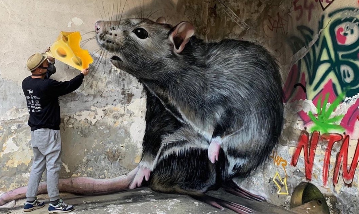 Street Artist Transforms Gas Tank Into Incredible Illusion of a Sphynx Cat on the Prowl