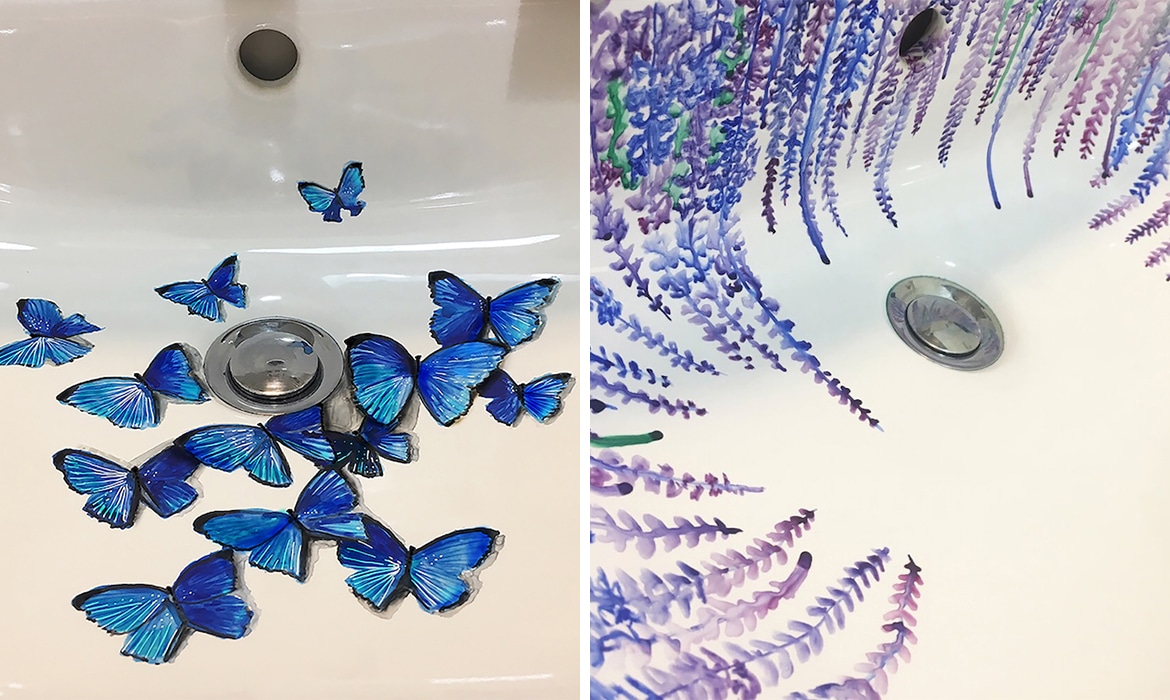 Artist Uses Sink as a Canvas for Extraordinary Watercolor Paintings