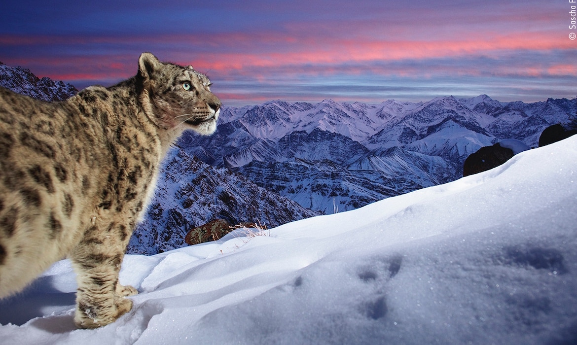 A rare image of a snow leopard taking in its territory has claimed the Wildlife Photographer of the Year People's Choice Award. German photographer Sascha Fonseca won the prize after a record number of votes, beating out 24 other shortlisted images. Nearly 60,500 votes went to Fonseca for his photograph taken with a camera trap in the remote Ladakh mountains of India.