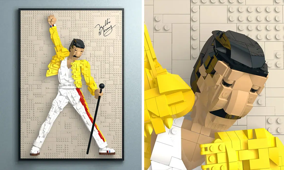 1,986-Piece 3D LEGO Poster Celebrates Freddie Mercury at Wembley
