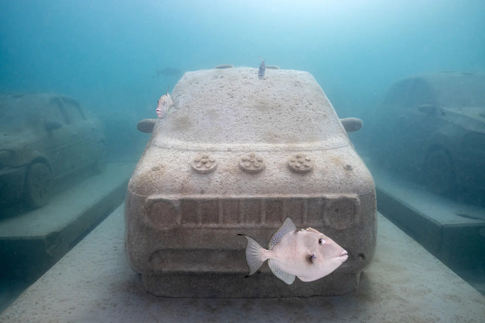 Off the coast of Miami Beach, something unexpected has plunged into the ocean: a series of concrete cars. Created by conceptual artist Leandro Erlich, this aquatic traffic jam was unveiled earlier this month during Miami Art Week, and inaugurates the ReefLine, a new, 7-mile underwater sculpture park that merges ocean advocacy, site-specific art, and ecological restoration.
