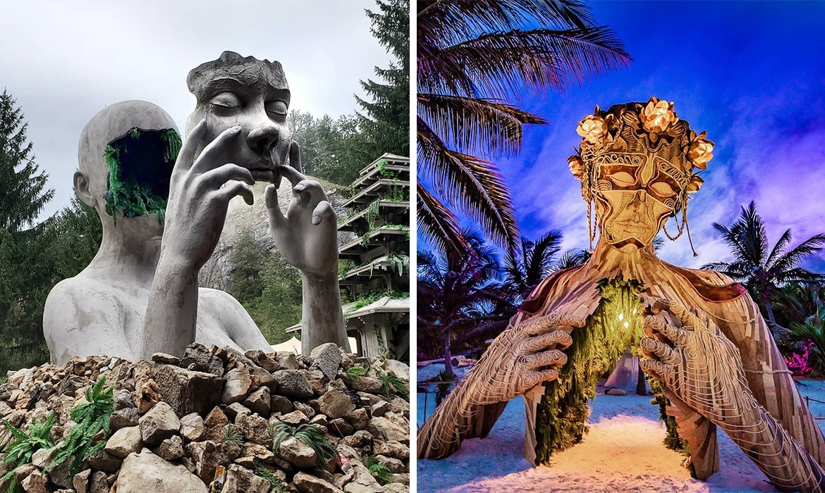 Una hipnótica escultura de madera se esconde en el segundo piso de un museo en la India. En ella, un hombre posa con arrogancia mientras mira hacia la habitación. En el espejo detrás de él, vemos a una mujer tímida con la cabeza ligeramente inclinada. Esta increíble escultura doble contiene a ambos personajes en un mismo bloque de madera, pero en lados opuestos.