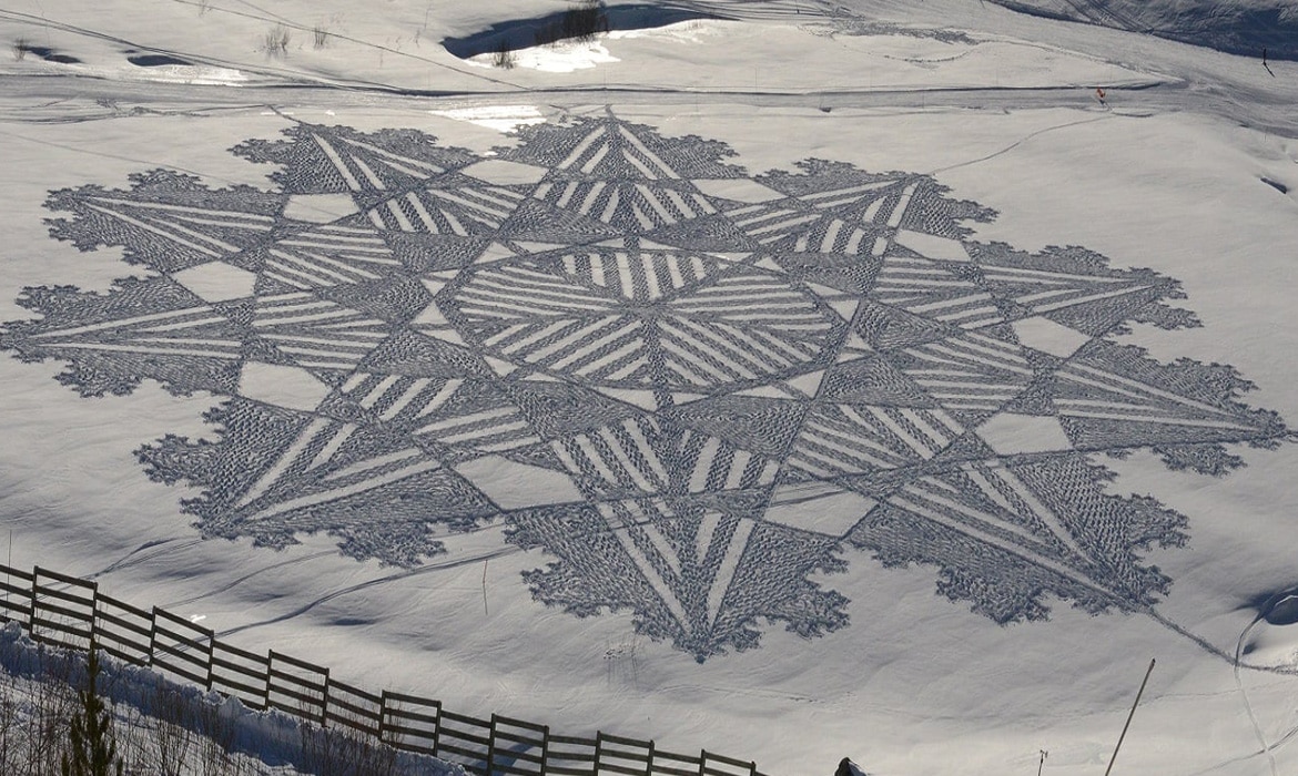 Para las mentes creativas, la nieve representa un gigantesco lienzo en blanco; pero a menudo se limita a muñecos de nieve u otras esculturas de nieve. El cartógrafo y entusiasta de las actividades al aire libre Simon Beck tuvo una idea diferente, y a lo largo de una década se ha abierto camino (literalmente) en el mundo del arte en la nieve.