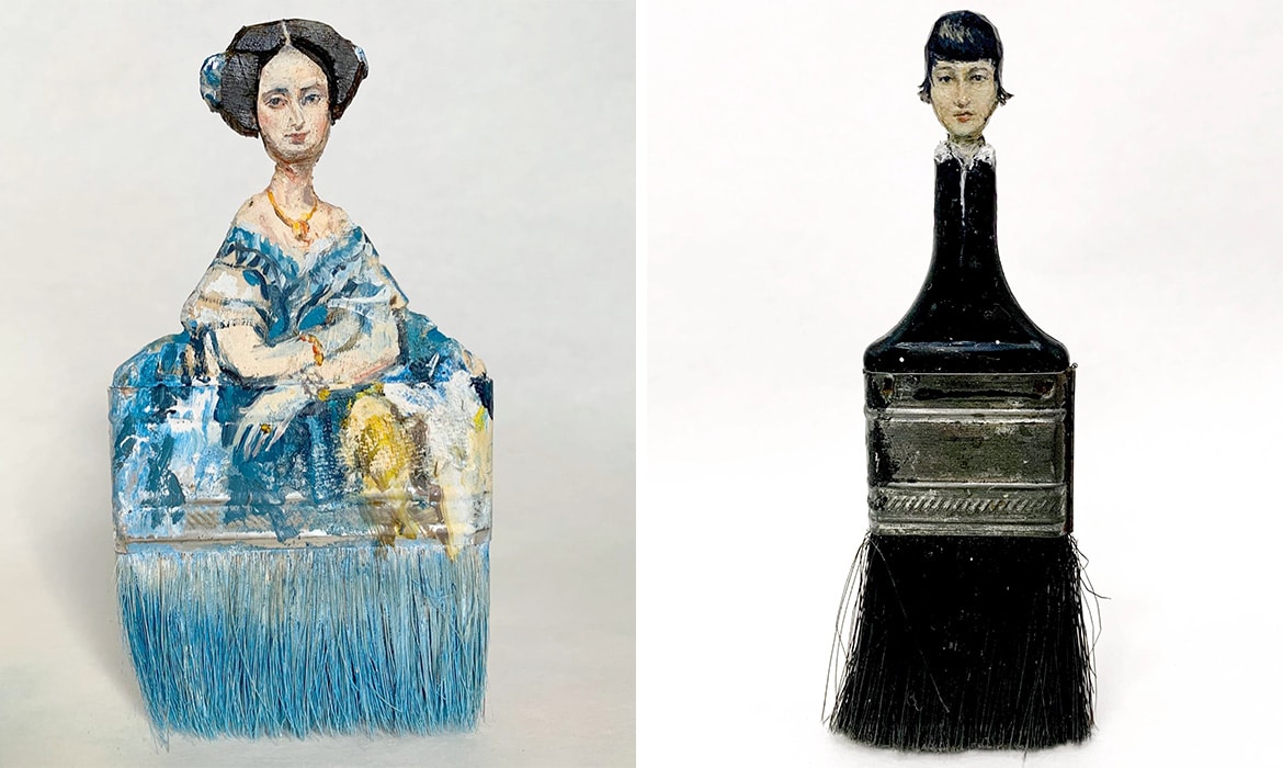 El arte de Rebecca Szeto da a los viejos pinceles un propósito renovado. La artista, que reside en San Francisco, transforma las herramientas usadas en figuritas inspiradas por la historia, la sociedad contemporánea y el potencial desaprovechado de los materiales desechados. Tituladas Paintbrush Portraits (“Retratos de pinceles”)