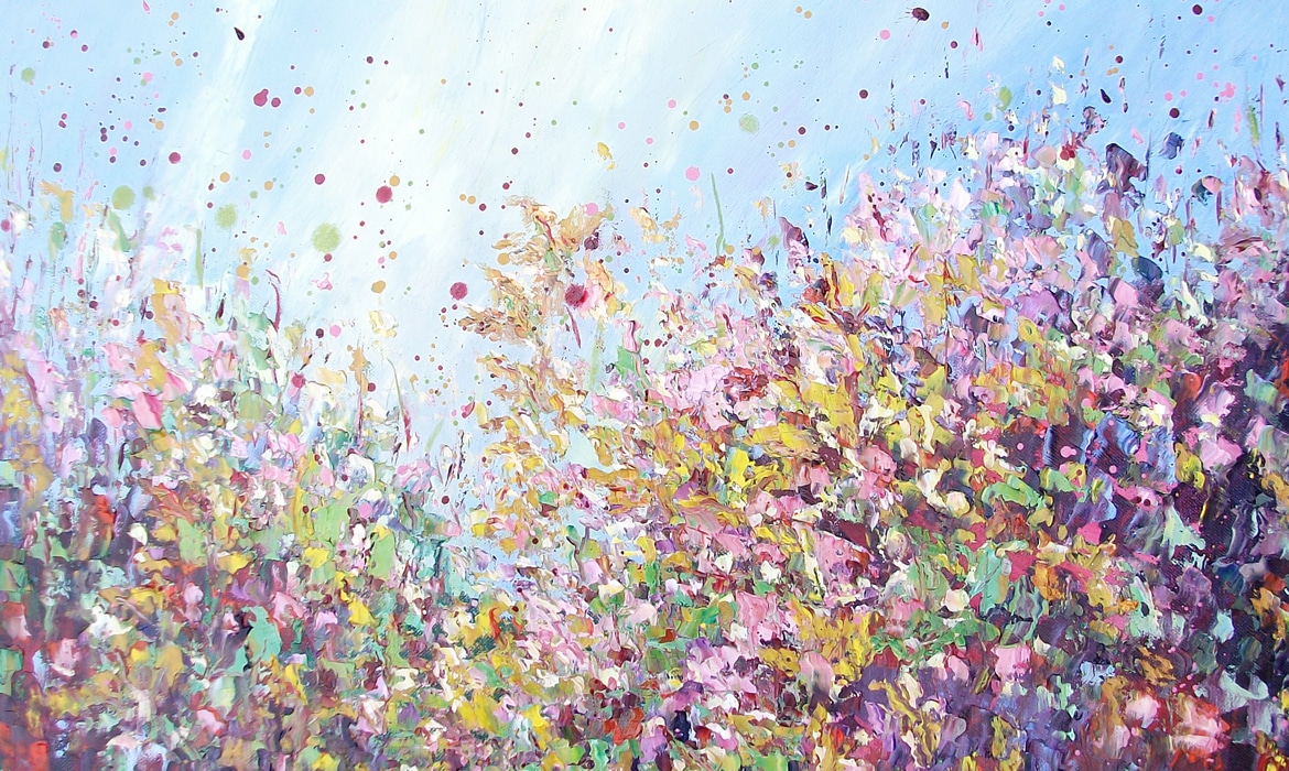 Las pinturas de Therese O’Keeffe, quien reside en Irlanda, hacen que puedas disfrutar de un día primaveral sin importar la época del año. Con pinceles y cuchillos de paleta, la artista aplica capas gruesas de pintura sobre el lienzo para dar vida a coloridos campos de flores. En el mundo de O'Keeffe, el cielo siempre es azul y las flores abundan.