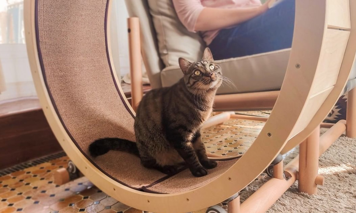 Este sillón con una rueda para gatos te permite jugar y relajarte con tu minino favorito