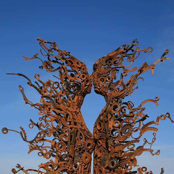 Si bien la mayoría de nosotros tiraríamos a la basura partes viejas de automóviles y cubiertos que ya han dado de sí, Brian Mock transforma estos artículos en fantásticas esculturas de chatarra. Este artista estadounidense recolecta y usa materiales desechados—como tornillos, tuercas y otras piezas de metal—para armar obras de arte en forma de animales.