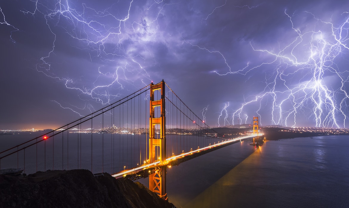 Al fotógrafo Michael Shainblum le interesan los paisajes, los timelapses, y la fotografía aérea, por lo que es natural que le encante retratar tormentas eléctricas. Aunque Shainblum ha fotografiado estos fenómenos naturales en varias ocasiones, su impactante imagen del puente Golden Gate de San Francisco iluminado por rayos es, definitivamente, una de sus tomas favoritas. ¿Por qué esta imagen es tan importante para Shainblum?