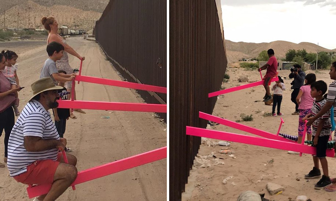 Sube y bajas instalados en la frontera de México-Estados Unidos unen a las personas a ambos lados
