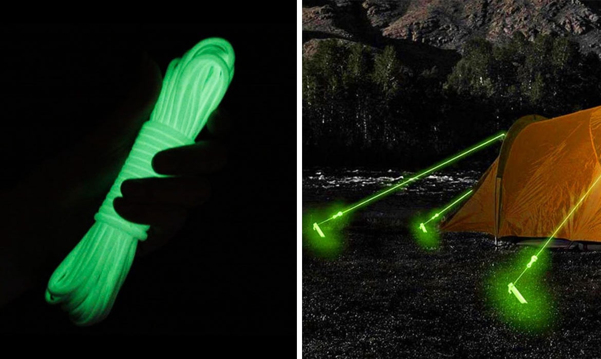 Estas cuerdas para tienda de campaña brillan en la oscuridad para evitar accidentes por la noche