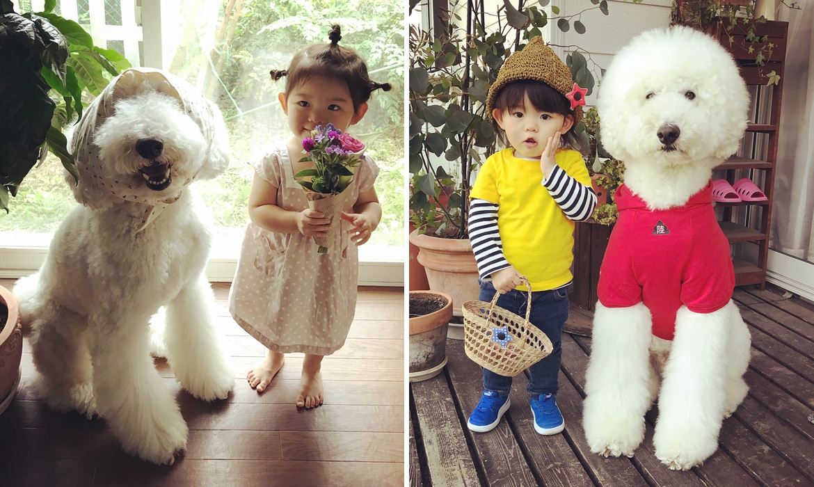 Los niños y los animales van juntos como pan y mantequilla. Ambos poseen una curiosidad y capacidad de asombro que los hace grandes amigos con relaciones muy cercanas. Una niña japonesa llamada Mame y su poodle gigante llamado Riku han sido inseparables desde que ella nació.