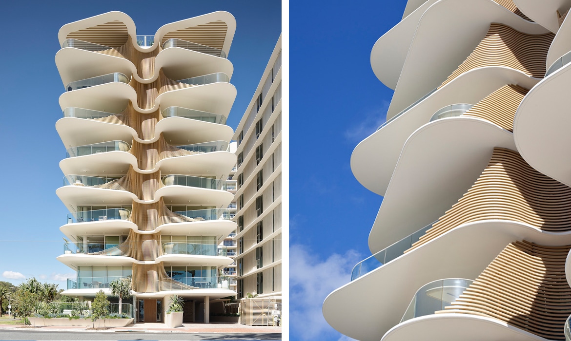La nueva torre residencial de 10 pisos de Koichi Takada Architects, llamada Norfolk, es un ejemplo perfecto de biomímesis en la arquitectura. Inspirada en las araucarias que cubren los alrededores de Burleigh Heads, en la costa australiana, la estructura imita la lógica organizativa de estos árboles, también conocidos como ‘pino de la isla Norfolk'. La araucaria se vale de capas superpuestas para proteger las semillas en su interior.