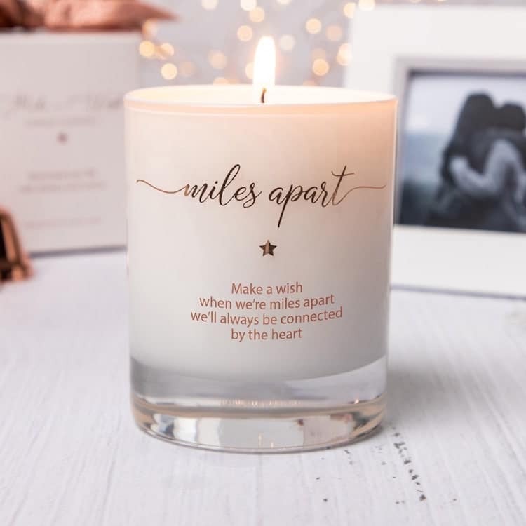 ¿Te gustaría llevar el lugar en el que está a todas partes? Prueba con un brazalete con coordenadas o fechas importantes. ¿Quieres obsequiarle una experiencia? Algo como un pastel o una vela puede alentarle hasta la próxima vez que se vean. Desde accesorios personalizados hasta papelería especial para escribir cartas de amor, estas ideas de regalos mantendrán a tu pareja cerca de tu corazón, sin importar qué tan lejos se encuentren.