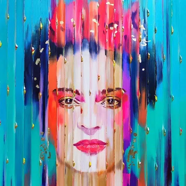 Mahlangu's paintings reimagine traditional Ndebele house paintings, integrating bright colors and precise geometrical designs.