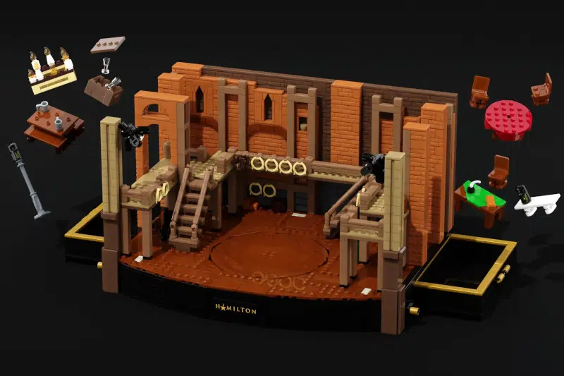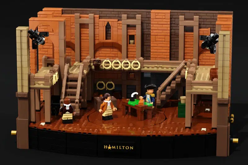 The 2,000-piece set was created by designer Marc aka MadamGalacticRetox of Minibrick Productions, who submitted it to the LEGO Ideas platform, where fans showcase their own creations. And this impressive Hamilton LEGO set does not skimp on details. The set recreates the wooden scaffoldings that make up the stage of Hamilton, originally conceived by designer David Korins at the Richard Rodgers Theatre in New York City.