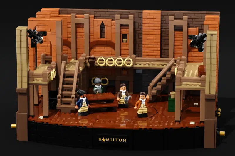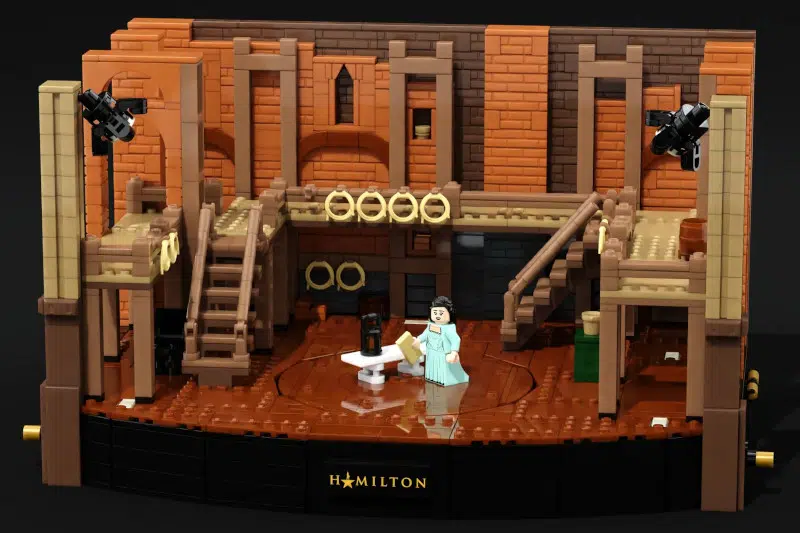 Created by designer Marc aka MadamGalacticRetox of Minibrick Productions, the LEGO set recreates the wooden scaffoldings that make up the stage of Hamilton, originally conceived by designer David Korins.