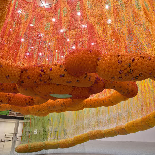Artist Leo Villareal, who must have his hands full with his upcoming installation The Bay Lights, is displaying Cylinder II, a tower consisting of 19,600 white programmable LED lights. According to the artist, the lights create ever-changing patterns that evoke “meteor showers, falling snow, clouds of fireflies and other natural phenomena.”