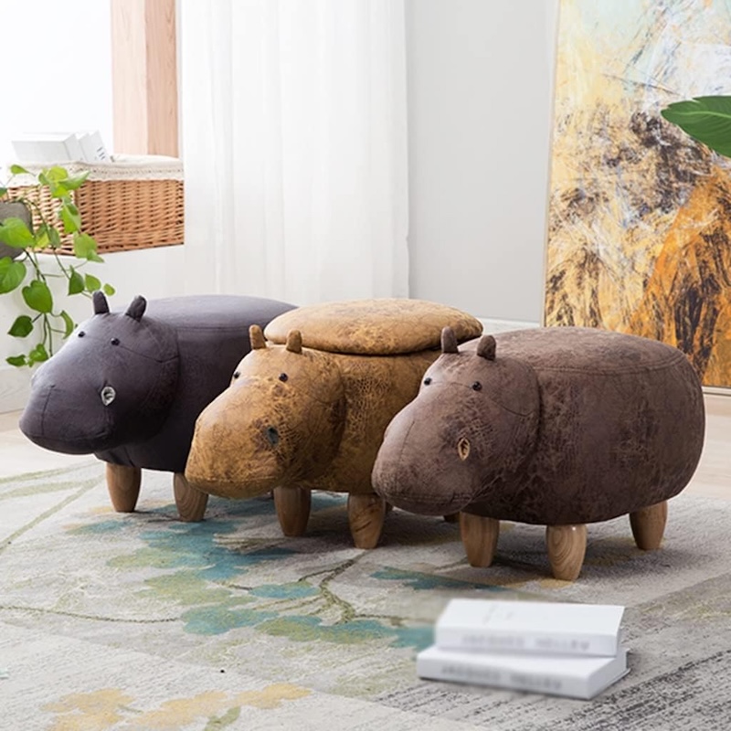 This hippopotamus-shaped ottoman (hence, the portmanteau of hippopottoman) boasts simple curves that give it a soft, contemporary appearance that can enhance any room with ease. Its cute and chic design makes it tempting to touch and enticing to use, while its short and stout build allows it to serve as a sturdy stool, footrest, or small seat. Some versions of it also provide additional storage space.