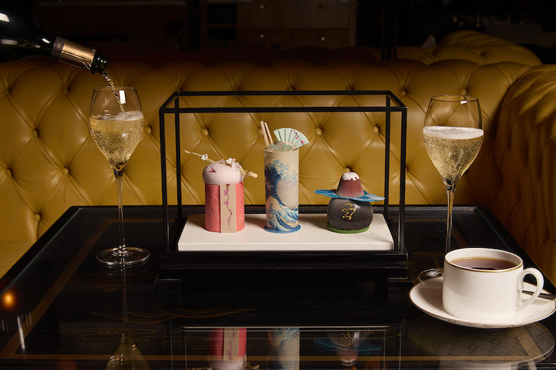 Curated by Executive Pastry Chef Mark Perkins, the menu includes a lemon chiffon cake featuring Hokusai’s The Great Wave off Kanagawa print from his Thirty-six Views of Mount Fuji series. There’s also a pink, Cherry Blossoms and Warbler-themed Japanese roll cake made of sakura cherry jelly, sencha-infused ganache, and yuzu chocolate. There’s even an edible Mount Fuji, inspired by Hokusai’s celebrated Thunderstorm Beneath the Summit print. These sculptural treats come with a selection of sandwiches, pastries, champagne, and all kinds of tea.