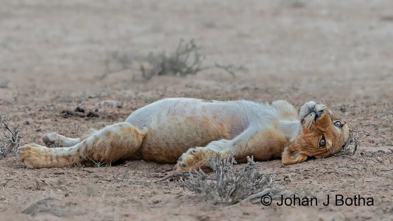 The group had plenty to eat, and a young lion took full advantage of the bounty. “After overeating, one cub rolled onto its back and briefly met my gaze through the camera lens,” Botha explained. It led to the magical moment in which he captured the image. “Lion cubs will continue feeding for as long as food is available,” he continues, “sometimes to the point of complete exhaustion.”