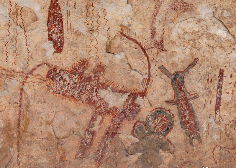 The murals were found to have been created over a period of approximately 4,000 years, with the earliest dating back about 6,000 years ago. Painted on limestone, the rock art depicts humanoid and animal-like characters, along with symbols that have yet to be deciphered. All these components were woven into visual narratives that detail creation myths, calendar cycles, and spiritual rituals, forming the cosmovision of this enigmatic people.