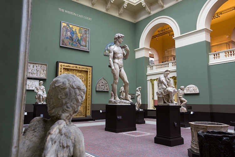 In addition to Florentine locations, copies of the David are on-view in various museums and public spaces across the globe. Notable replicas include a plaster copy in London's Victoria & Albert Museum, a bronze casting in Buffalo, New York's Delaware Park, and a marble copy on the Avenue du Prado in Marseille, France.