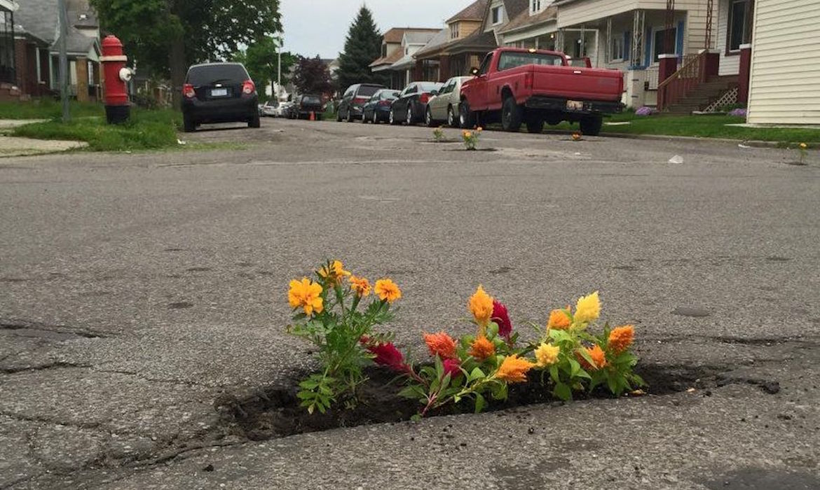 People Are Planting Flowers in Potholes Their City’s Neglecting to Fix