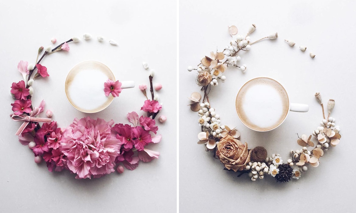 Woman Keeps Beautiful Visual Diary of Coffee She Drinks Surrounded by Flowers