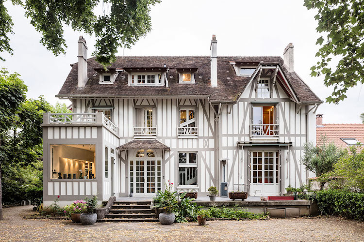 Catalonia-based creative team 05AM Arquitectura is known for their innovative design and old-meets-new aesthetic. For Maison à Colombages, an inventive interior project, the firm put a contemporary spin on a classic structure. Located in the outskirts of Paris in La Varenne Saint Hilaire, Saint Maur des Fosses, the gorgeous 19th century home features a traditional French façade. From the outside, it appears entirely old-fashioned; however, inside, it is completely contemporary.