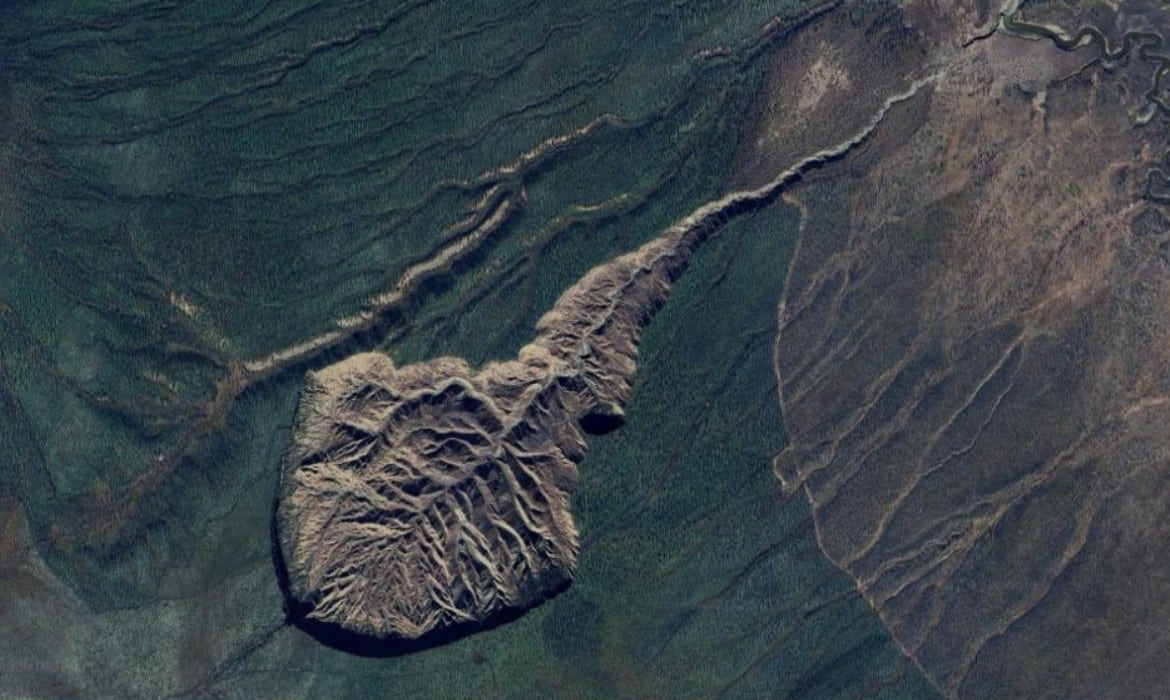Deep in Siberia, an enormous depression in the Earth, often called the Gateway to Hell, is rapidly expanding, taking large chunks of Earth with it. The Batagaika crater is the world's largest permafrost crater and emits a startling quantity of greenhouse gases. The tadpole-shaped hole measures a kilometer long (almost a mile) and reaches depths of up to 100 meters (328 feet). Though it's called a crater, that's actually a misnomer.
