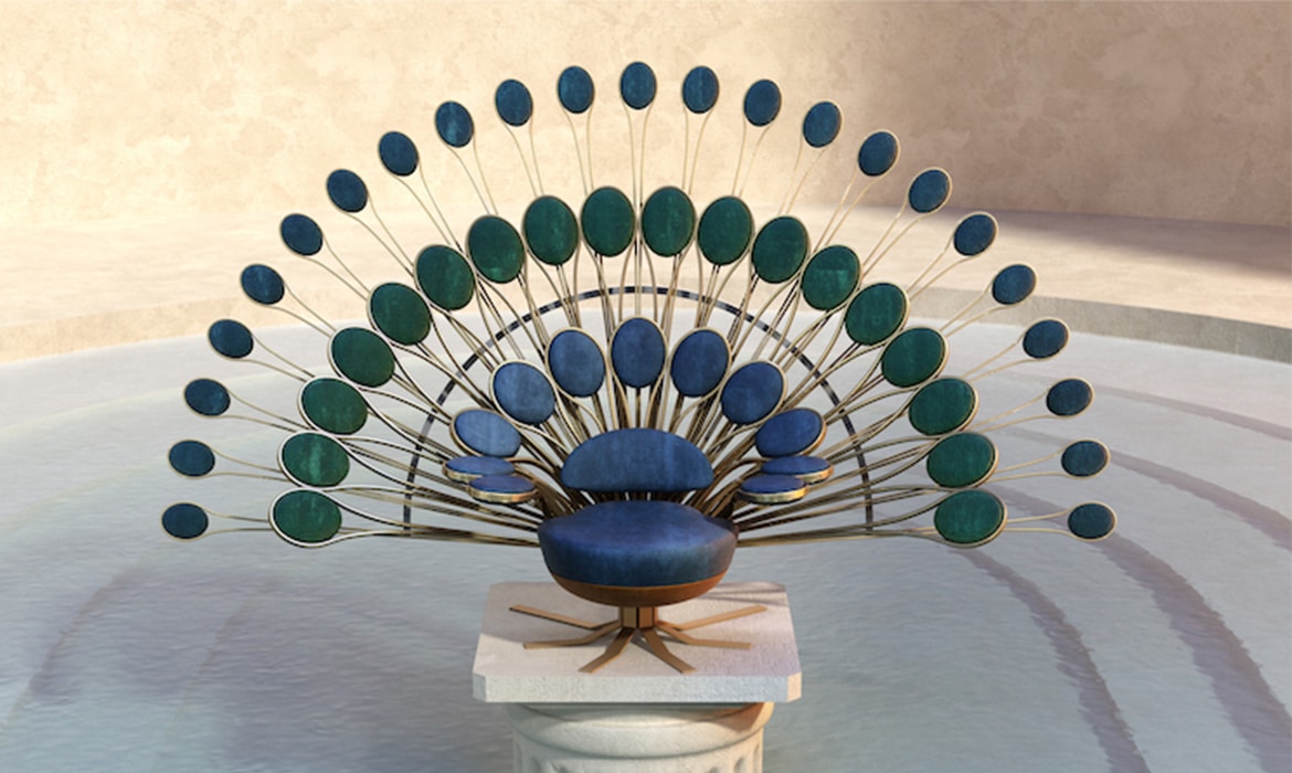 Los Angeles-based designer Marc Ange merges the iconic silhouette of a peacock with a functional armchair design in his collection titled Il Pavone. The statement-making furniture was done in collaboration with Visionnare, a luxury furniture store. Just like the beauty of the colorful bird, the striking pieces feature flared backrests that mimic the shape of its unique plumage.