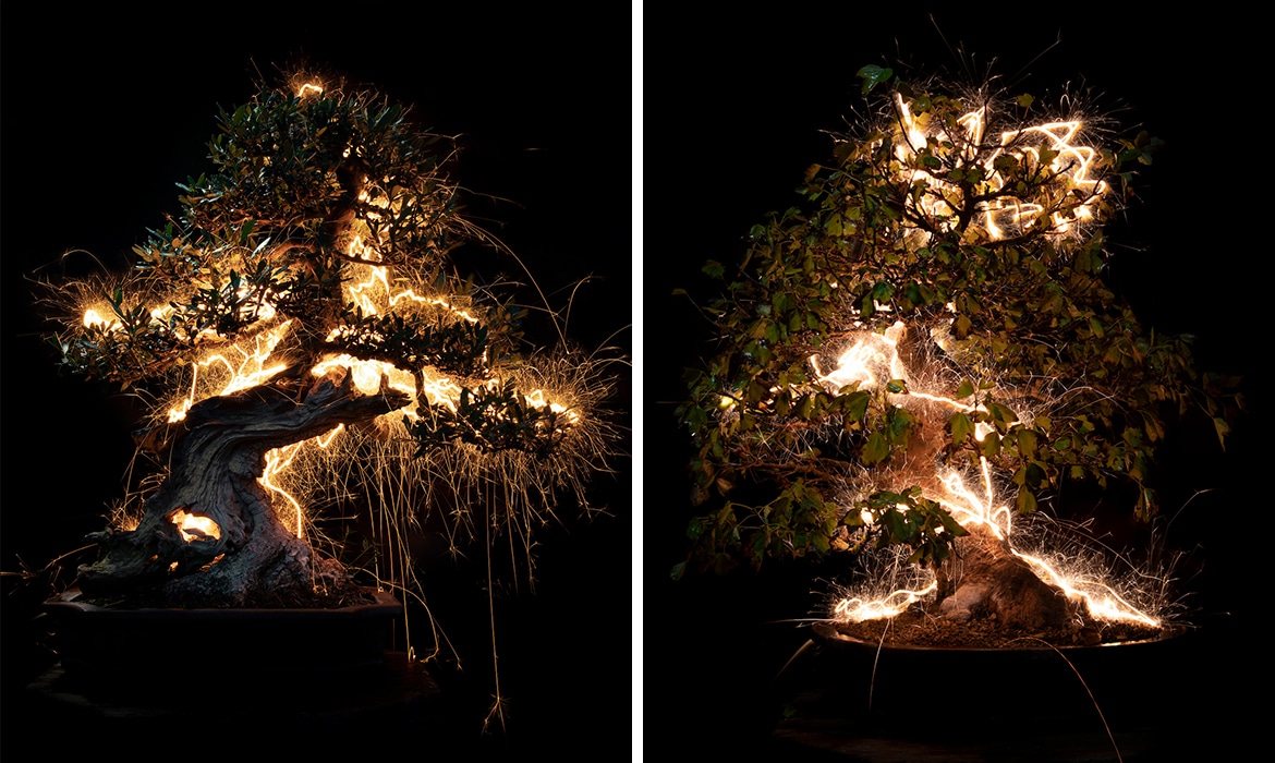 Long-Exposure Photos Envelop Bonsai Trees With Streams of Bright Light