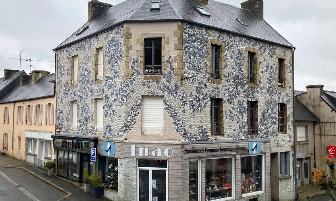 Artist Katrin Vates evokes the lushness of the great outdoors through embroidery. Her meticulously detailed landscapes depict tall trees and hidden houses via tiny stitches. They evoke the beauty and wonder you feel when walking through the woods; that the landscape is vast but is full of small moments like a leaf floating towards the ground. Vates became interested in embroidery as a way to decorate things in her home.