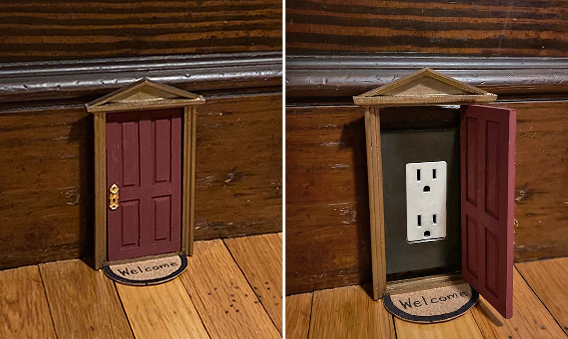 You might have covers on your electrical outlets to help protect the curious kids (or pets) in your life. While many of these covers are ordinary plastic inserts, Imgur user cristinaf had a different—and much more enchanting—idea. She decided to install dollhouse doors around the outlets and then shut the doors, effectively concealing the sockets while adding a bit of mystery to what could be behind the opening.