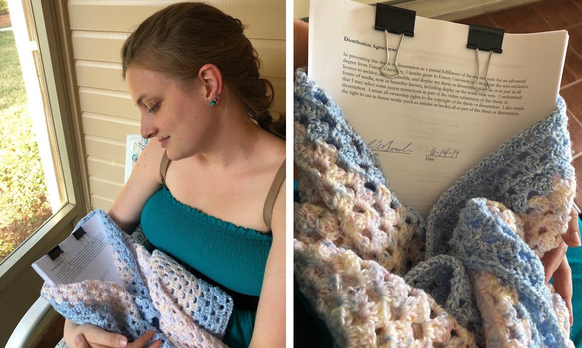 Grad Student Has Hilarious Maternity Photo Shoot with Her Thesis After “Longest Labor Ever”
