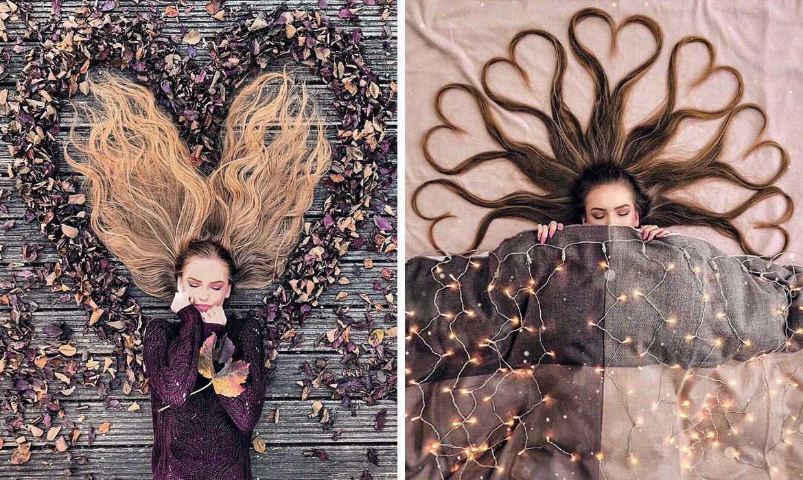 Dutch student Krissy Elisabeth is just like a real life Rapunzel, with gorgeous, flowing hair that reaches down to her waist. Her popular Instagram account shows that the longer your hair, the more fun you can have with styling it, and Elisabeth is never short of inspiration. With over 11,000 followers, her creative flat lay snapshots showcase her wavy golden locks, artistically arranged alongside flowers and leaves.