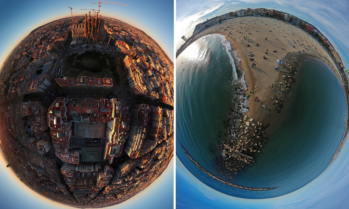360° Aerial Photos of Barcelona Transform the City Into Small Planets