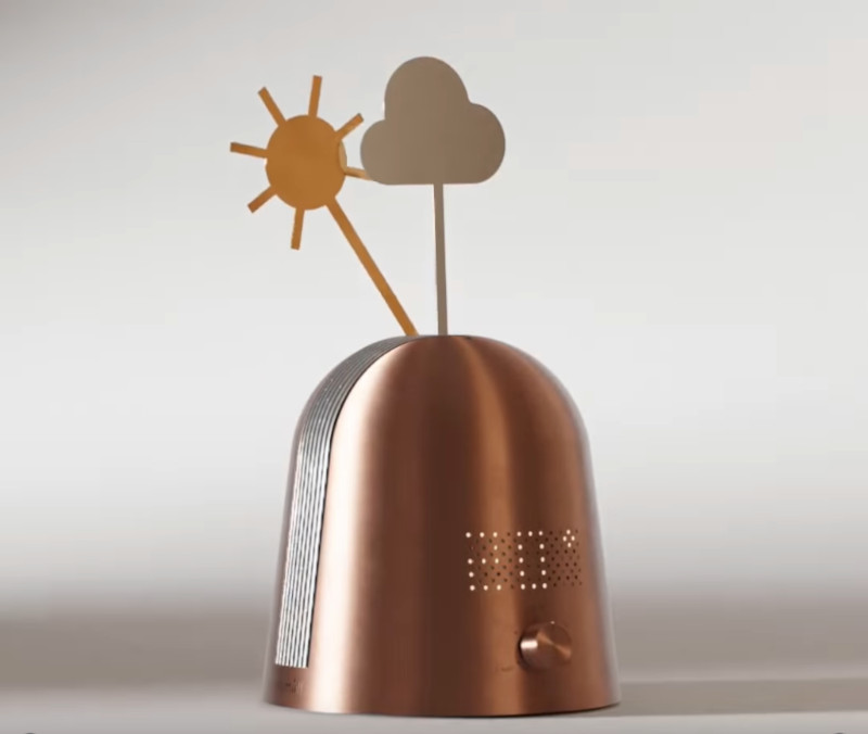 Made of metal, Skymill has a handful of brass, copper, and steel arms with nine icons that shift and move to let you know what’s happening outside.