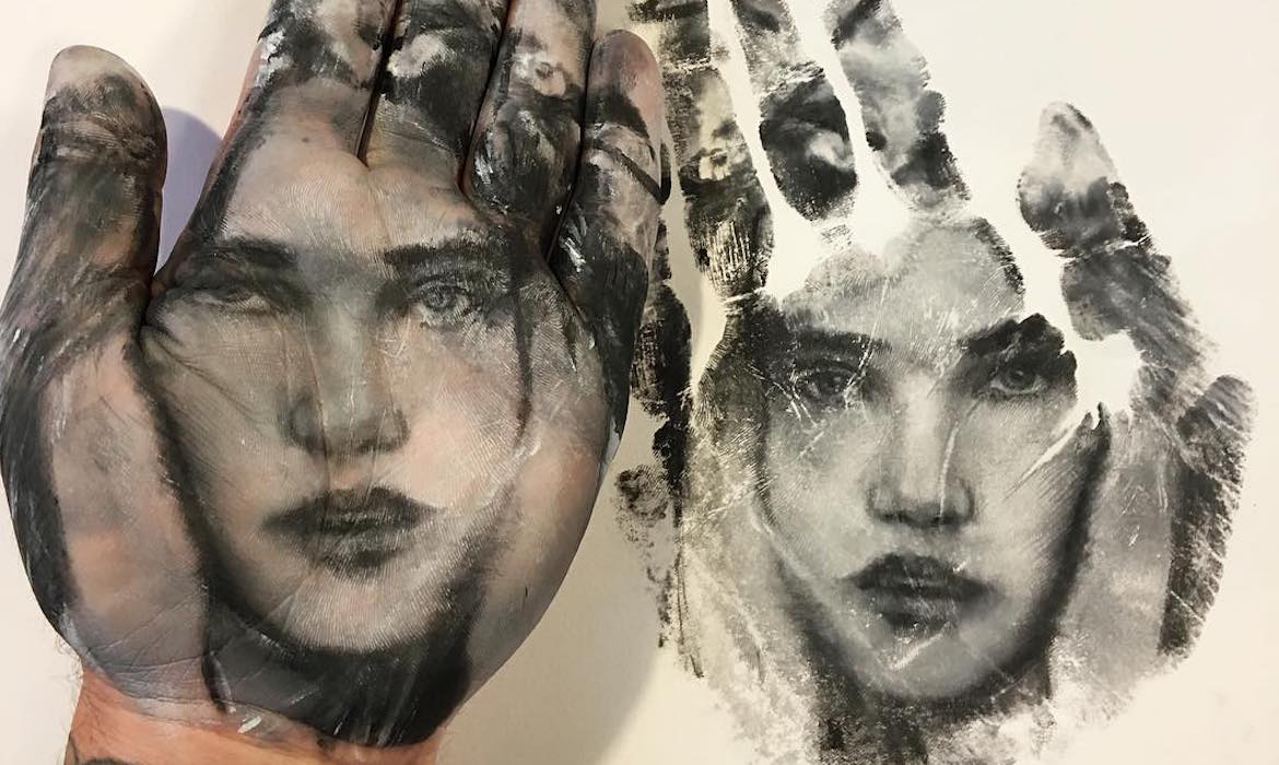 Artist Creates Striking Prints of Realistic Portraits Using His Hands as Stamps